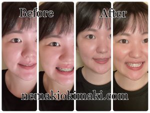 ↑Fotka před a po v den sundání rovnátek. Dobrá práce, Nao!